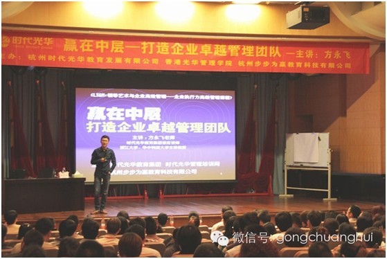 5月17日早9點(diǎn),共創(chuàng)會(huì)管理人員職業(yè)化塑造之《贏在中層——打造企業(yè)卓越管理團(tuán)隊(duì)》在浙江嘉海大酒店十樓會(huì)議廳如期舉行,本次課程有幸邀請到共創(chuàng)會(huì)創(chuàng)始人、時(shí)代光華教育發(fā)展有限公司總裁、步步為贏教育科技集團(tuán)董事長----方永飛老師擔(dān)任主講教授,方老師表示,從現(xiàn)在中小企業(yè)的整體情況看,員工的職業(yè)化素養(yǎng)普遍偏低,難以規(guī)范,但要讓企業(yè)有一個(gè)規(guī)范健康的發(fā)展,首先要統(tǒng)一員工的思想,加強(qiáng)管理人員的職業(yè)化塑造,就此觀點(diǎn),方老師特地為共創(chuàng)會(huì)會(huì)員企業(yè)安排此次課程,旨在打造出一支支強(qiáng)有力的團(tuán)隊(duì),全面推動(dòng)會(huì)員企業(yè)管理升級。