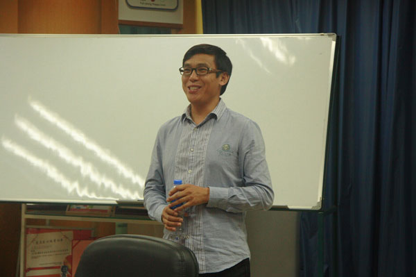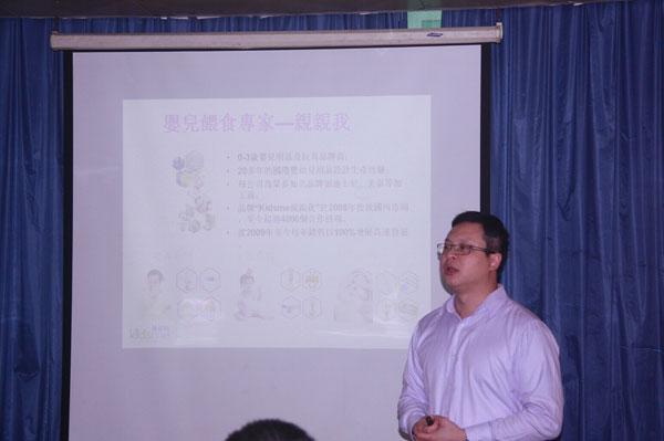 (圖為特邀嘉賓新加坡品牌管理專家金伯揚老師給大家?guī)砭史窒恚?/p>