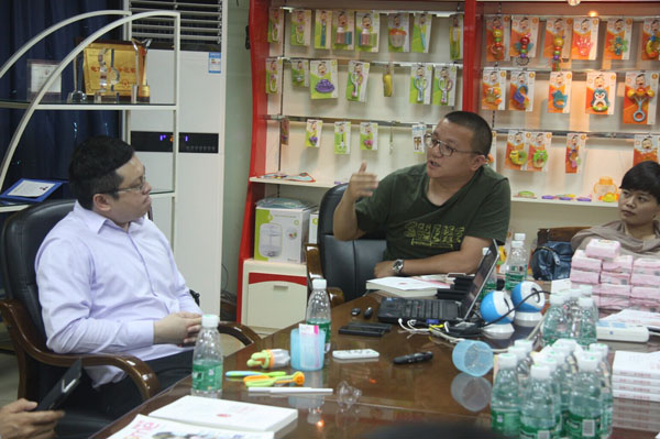 (圖為會員們正在參觀“親親我”公司的王牌產(chǎn)品“咬咬樂”,親親我實業(yè)有限公司通過打造所在細分領(lǐng)域的自主品牌,成功站穩(wěn)市場腳跟)