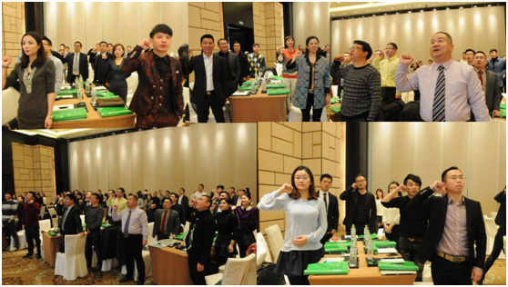 接下來(lái)是本次盛典最莊嚴(yán)的一刻,共軍們?nèi)w起立,握拳右舉、用心宣誓著我們共創(chuàng)會(huì)自己的宣言:……積極向上、勤奮好學(xué),我們樂(lè)于分享,渴望成長(zhǎng)……