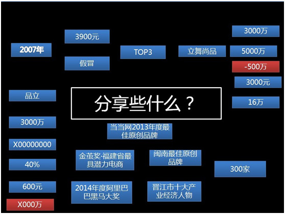 2014年度阿里巴巴黑馬獎(jiǎng)得主、晉江十大產(chǎn)業(yè)經(jīng)濟(jì)人物,最佳原創(chuàng)男裝潮品牌【品立】創(chuàng)始人,一個(gè)比女人還漂亮的男人,在分享他從傻B到騷B的磐涅過(guò)程( 創(chuàng)業(yè)7年,他用思維改變了商業(yè)模式,同時(shí)也被商業(yè)所改變。從通過(guò)線上平臺(tái)賣(mài)斷鞋賺取辛苦費(fèi),到自創(chuàng)男裝品牌,依靠打造爆款成為知名淘品牌;從慘烈競(jìng)爭(zhēng)虧損嚴(yán)重,到走調(diào)性,適時(shí)推出中高端品牌,發(fā)起新的電商突圍,并在短短半年取得了突出的成績(jī)。)!每個(gè)人成功的背后一定有他的故事,至少他的堅(jiān)韌與堅(jiān)持、頑強(qiáng)與執(zhí)著,敢想敢要敢突破就是他最好的特質(zhì)。