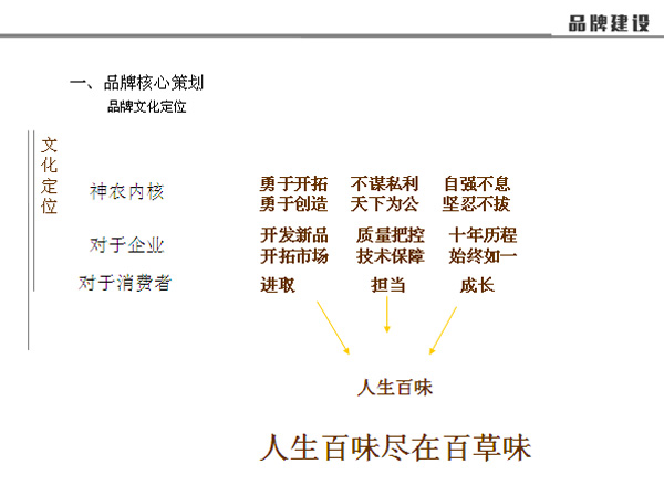 文化核心建設(shè)四步走:發(fā)掘文化的力量,進行文化梳理;擁有獨特個性,進行策略制定;分享共同的價值觀,運用調(diào)性定位語與廣告語;建立美譽度與忠誠度,利用各媒介案稿。