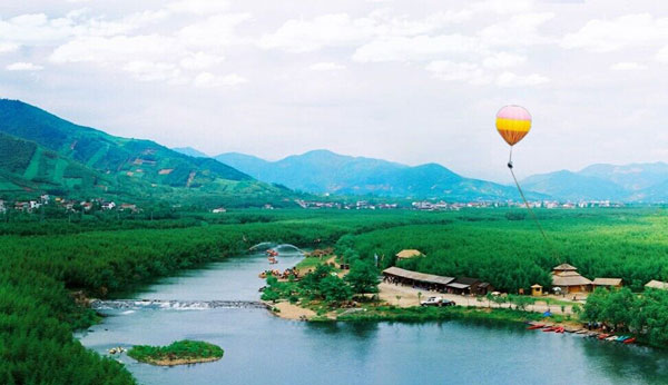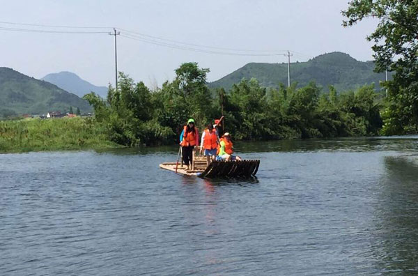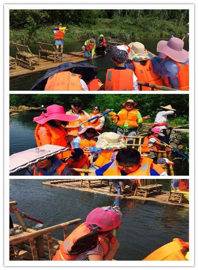 全長水路3.5公里,歷時一小時左右,由專業(yè)筏工點(diǎn)篙撐筏,順莫干山、天目山支流匯合雙溪而下。溪水清澈明凈,水面時有翠鳥、鴨子等出沒,兩岸茶山蔥籠,淡竹林綿延不絕。溪邊有“苧翁垂釣”、“村姑搗衣”,實(shí)屬一幅天然水墨風(fēng)情畫,都市喧囂在此蕩然無存,令總裁們也卸下了平日繁重的工作包袱,與孩子們置身于秀美山水之間,盡情享受著天倫之樂。