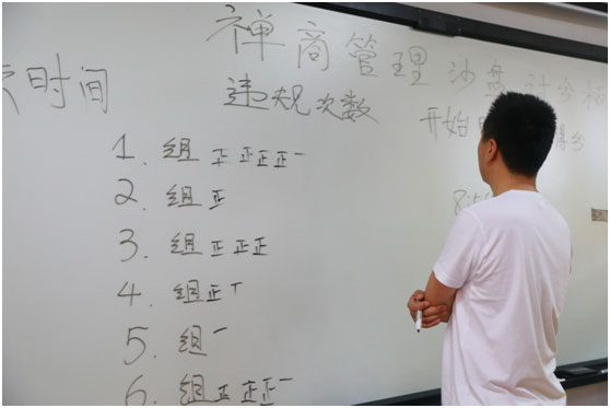 全體師兄分組成6個公司,并進(jìn)行公司成員的角色分配,全程只能用手勢和表情進(jìn)行部門溝通,各司其職來完成管理沙盤的演練。簡單簡短的一個演練游戲,卻神奇的將每個人在企業(yè)經(jīng)營中自身存在的脾氣和優(yōu)缺點瞬間暴露,令每位師兄感慨反思。