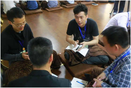 禪商學(xué)員們分別寫下開課師兄布置的問題,在師兄的指引下相互幫助,參禪悟并討論分析解答。