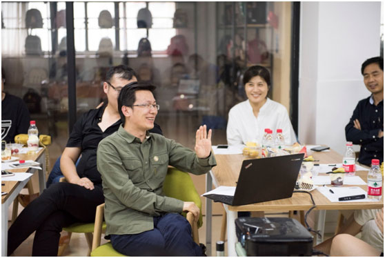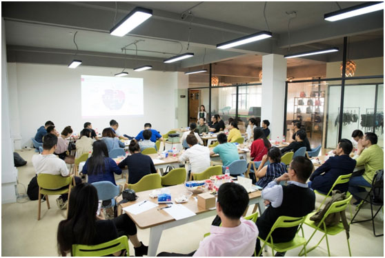 在總經(jīng)理于瀟瀟帶領(lǐng)下的公司簡單介紹參觀后,共創(chuàng)會游學團來到會議室開始進行分享討論。