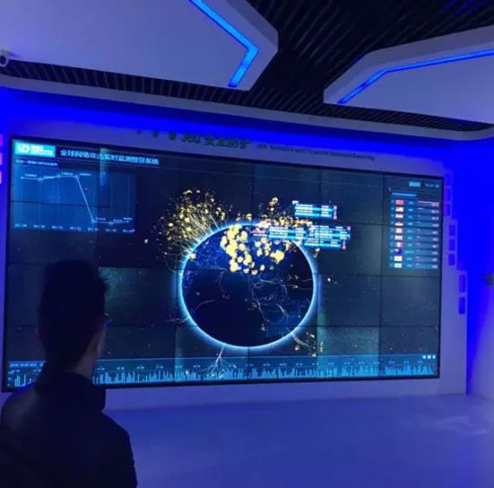 (上圖是360利用大數(shù)據(jù)技術(shù)研發(fā)的全球安全威脅熱圖+可視化的展示形式)