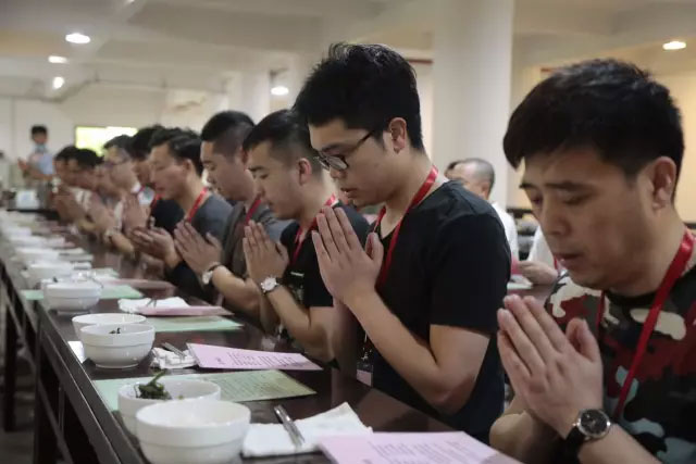千里迢迢趕過來,共軍家人只為獲得開示,消除心魔,讓事業(yè)、家庭美滿。沒想到,這么多人陪著,用齋,出坡,念經,活動、苦笑。這么多人陪著你,沒有任何利益勾連,融融樂樂相處,像家人一樣。