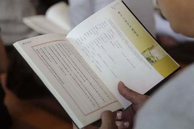 通一師父帶領學員吟唱佛家妙音,僧人的聲音,確實渾厚圓融。