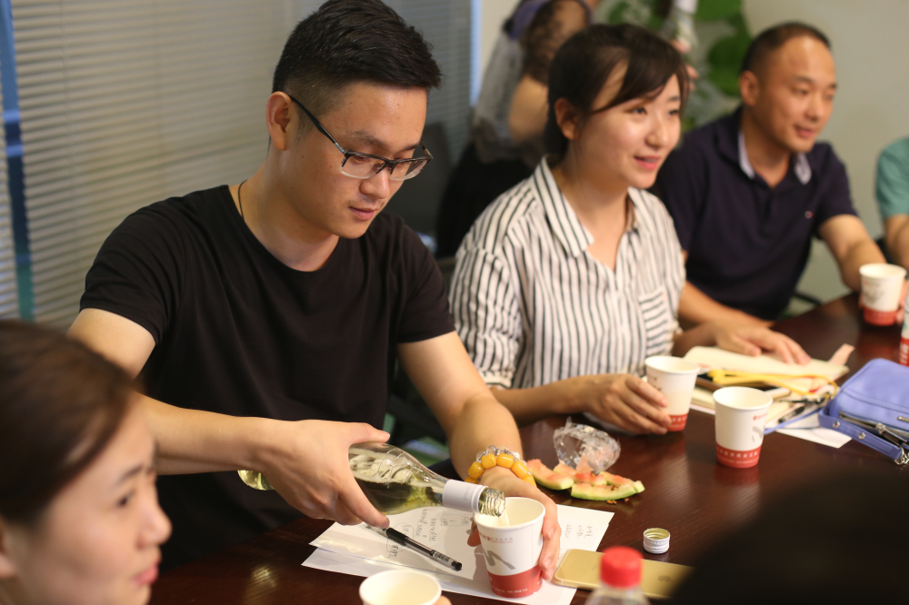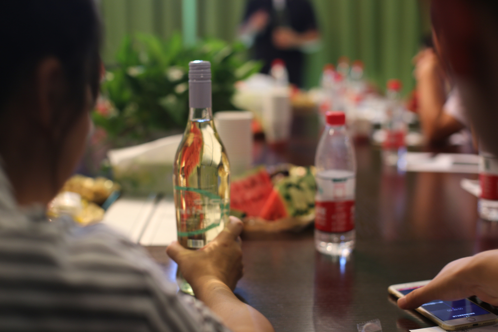 會議過程中,鄭總把他的產(chǎn)品拿到現(xiàn)場與共軍們分享,現(xiàn)場儼然成了一個(gè)“品酒會”。