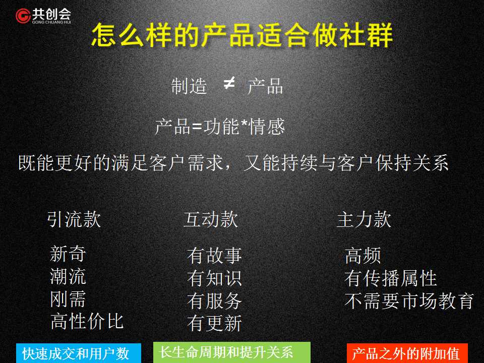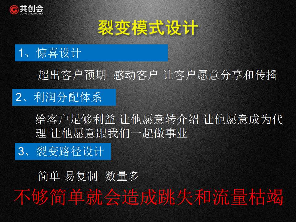 少就是多,學(xué)會聚焦。對于團(tuán)隊(duì)尤其找1000個(gè)人,還不如10 10 10裂變。所有公司都可以做社群改造,但,不是所有產(chǎn)品都適合做社群。