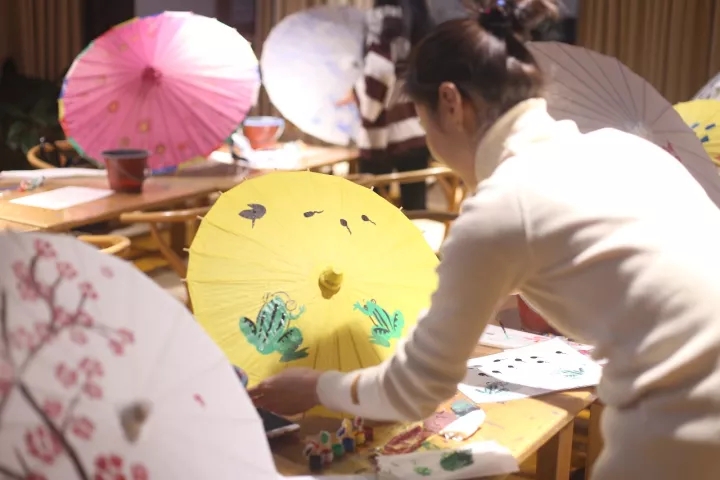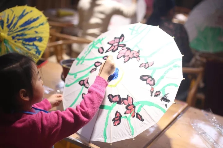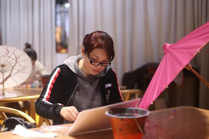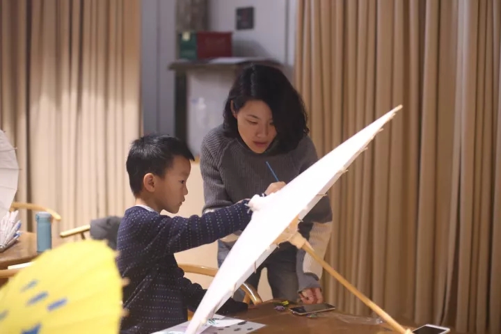 女企業(yè)家們和寶寶都用五顏六色的顏色裝點(diǎn)著一把把油紙傘,拿起畫(huà)筆,一展才藝,描繪精美的畫(huà)面,仿佛又同孩子一般回到了色彩斑斕的童年。