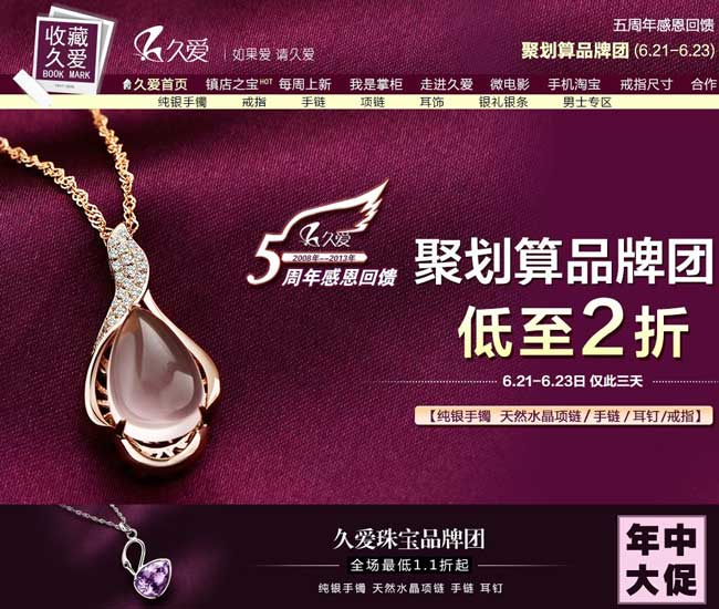 客戶公司簡(jiǎn)介:久愛的總部位于深圳市羅湖區(qū)水貝國(guó)際珠寶交易中心,專業(yè)生產(chǎn),品質(zhì)優(yōu)良。我們經(jīng)營(yíng)高檔銀飾珠寶,品質(zhì)優(yōu)良的水晶飾品。擁有完善的生產(chǎn)體系,從選材到產(chǎn)品,每個(gè)環(huán)節(jié)都有嚴(yán)格的控制和把關(guān)。在淘寶上一直被指定為讓顧客放心的品牌賣家,為您提供性價(jià)比最高的產(chǎn)品,讓您輕松地引領(lǐng)時(shí)尚,感受久愛珠寶的無(wú)窮魅力。我們用愛在服務(wù),牽動(dòng)著青春的誓言,記憶著最難忘的畫面,觸摸著最真的感動(dòng)。久愛用小小的飾品記載著動(dòng)人的回憶。