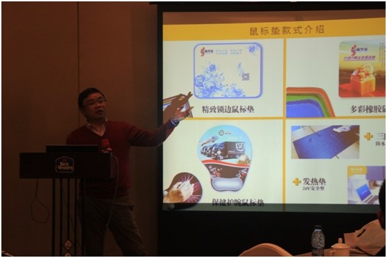 (上圖為杭州聚奎電子科技有限公司張峰張總正在精彩地與大家分享會(huì)說話的墊子的項(xiàng)目,對(duì)于此項(xiàng)目的啟動(dòng)、資金、盈利模式、投入產(chǎn)出比等做了詳細(xì)的講解)