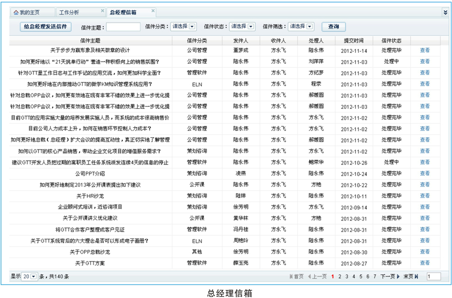 GTT員工關(guān)懷系統(tǒng)目的在于從細(xì)微入手、讓員工說出心聲,以溫馨凝聚員工,從而培養(yǎng)員工對企業(yè)的認(rèn)同感和歸宿感,激發(fā)其敬業(yè)意愿,提高公司員工的敬業(yè)度。主要功能通過總經(jīng)理信箱、學(xué)習(xí)成長、生日提醒、入職紀(jì)念、每日一句、工作助手、員工互助、寶寶秀、實踐社團(tuán)等讓員工感受家的溫暖;從而提高員工幸福指數(shù),增加企業(yè)文化內(nèi)涵!