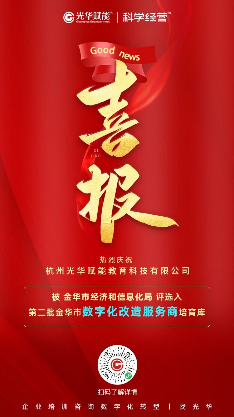 近日,金華市經濟和信息化局公示了“第二批金華市數字化改造服務商培育庫入庫企業(yè)名單”,光華賦能憑借專業(yè)的咨詢實力、強悍的技術實力和完善的服務體系成功入選!